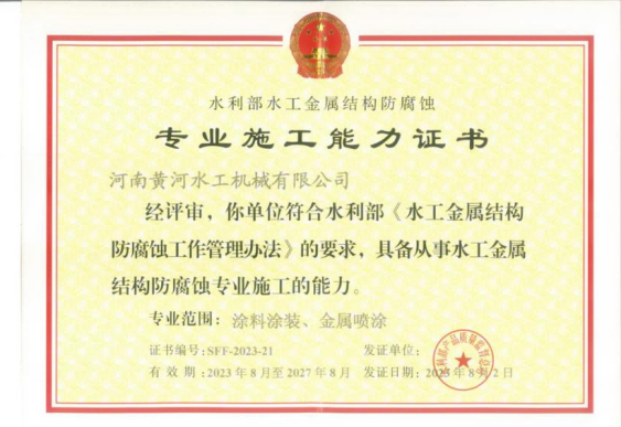 鍏徃鍏鋒湁鏍囧噯鍖栫殑鍠風(fēng)爞闄ら攬杞﹂棿銆佸ぇ鍨嬫姏涓歌濺闂淬佸柗娣嬪厜姘т竴浣撳寲鐨勫柗婕嗚濺闂達紝騫朵簬2023騫?鏈堝彇寰椾簡姘村埄閮ㄦ按宸ラ噾灞炵粨鏋勯槻鑵愪笓涓氭柦宸ヨ兘鍔涜瘉涔︺?